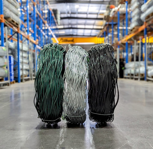 Netting clips are an alternative to lacing or tie wire. They are fastened using a handheld plier tool to connect mesh to cable wire at regular intervals.
